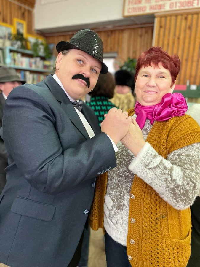 А в д. Малахово мероприятие прошло в формате костюмированного шоу, где граждан старшего поколения удивляли, радовали и поздравляли яркие персонажи, среди которых были команда джентльменов, госпожа осень и всеми любимый Чебурашка.
